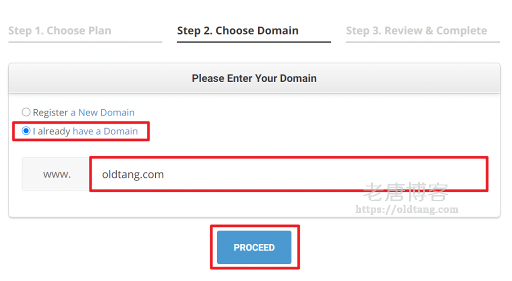 建议我们选择 I already have a Domain,然后填写自己的域名,或者随便填一个。不要在这里注册域名,不划算。