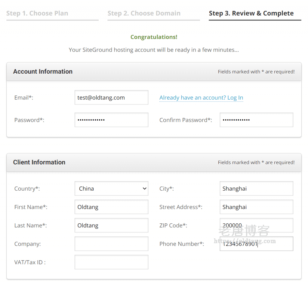 三、填写 SiteGround 账户注册信息