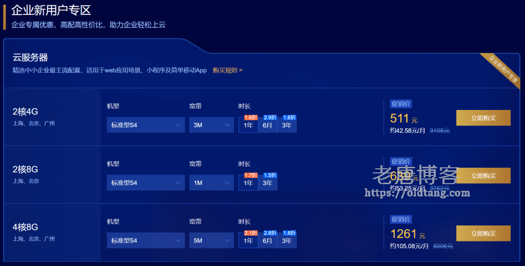 下面还是有针对企业用户的特惠。(点击前往购买)企业更多活动可以参考《腾讯云企业上云特惠活动:云服务器 云数据库低至 2.5 折,新老用户同享》。