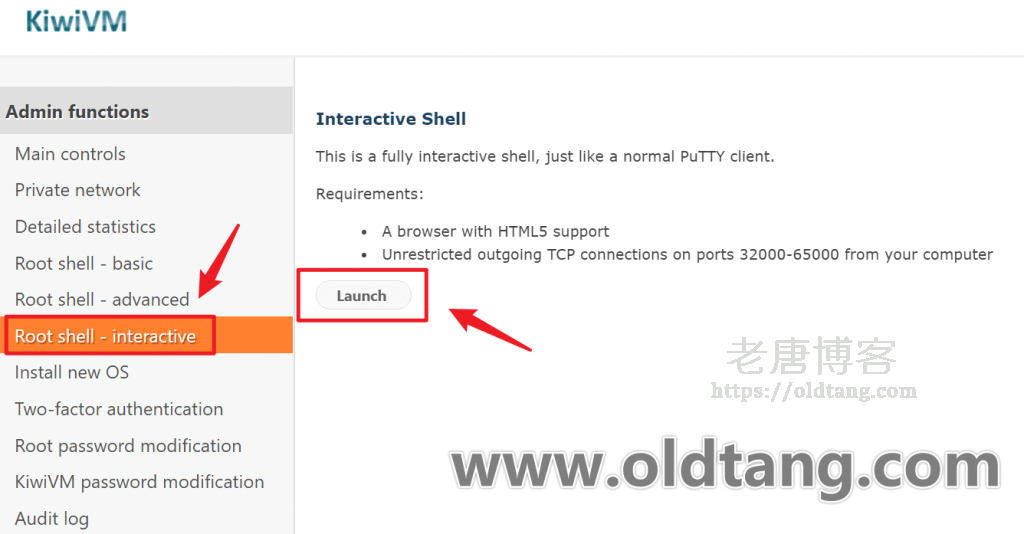然后我们点击左侧菜单的 Root shell – interactive,再点击 Launch,就可以看到我们重装系统的界面了。