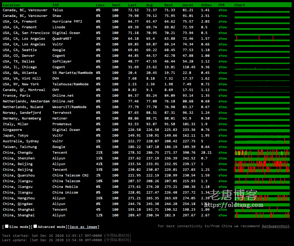| 华中 | 河南洛阳(bgp) 243.7ms / 湖南益阳(移动) 727.7ms | 309.3ms |