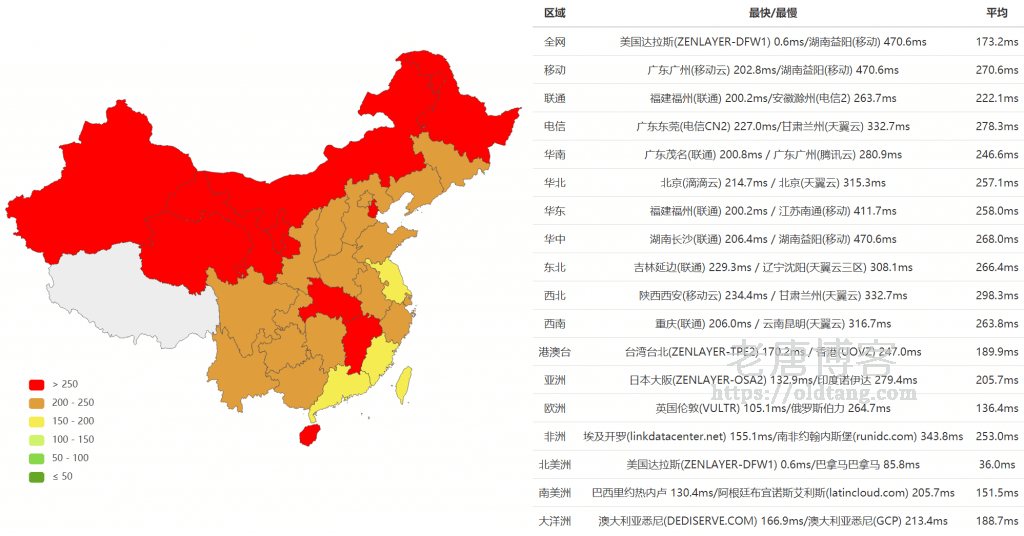 以下测试结果来自 ipip.net 的在线测试,大家如果想自己测试,也可以自行前往: