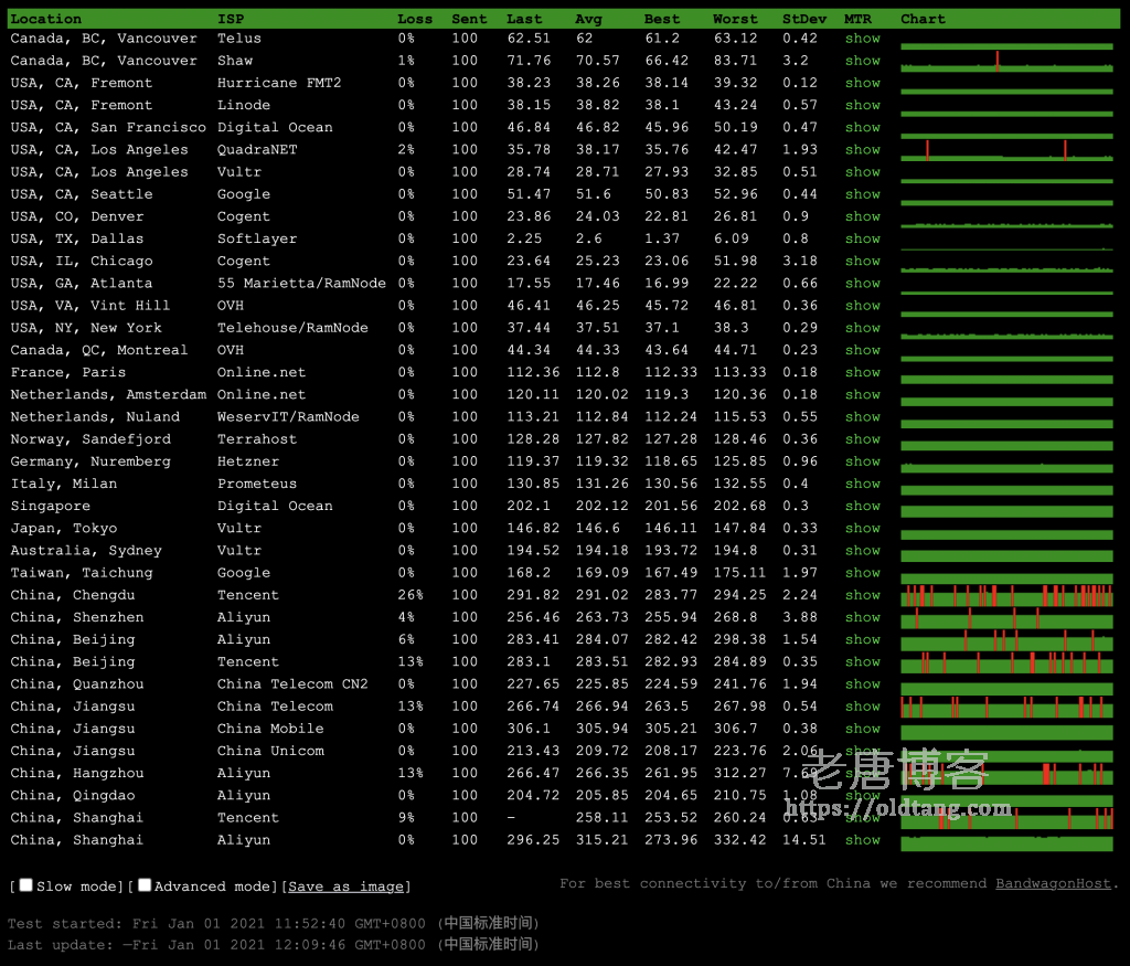 从测试结果来看,Hostwinds 三个机房的丢包率都还可以,其中西雅图机房的丢包率是最低的,这个机房也是老唐一直比较推荐的一个机房,用来建站最合适一些。演示站可以参考: