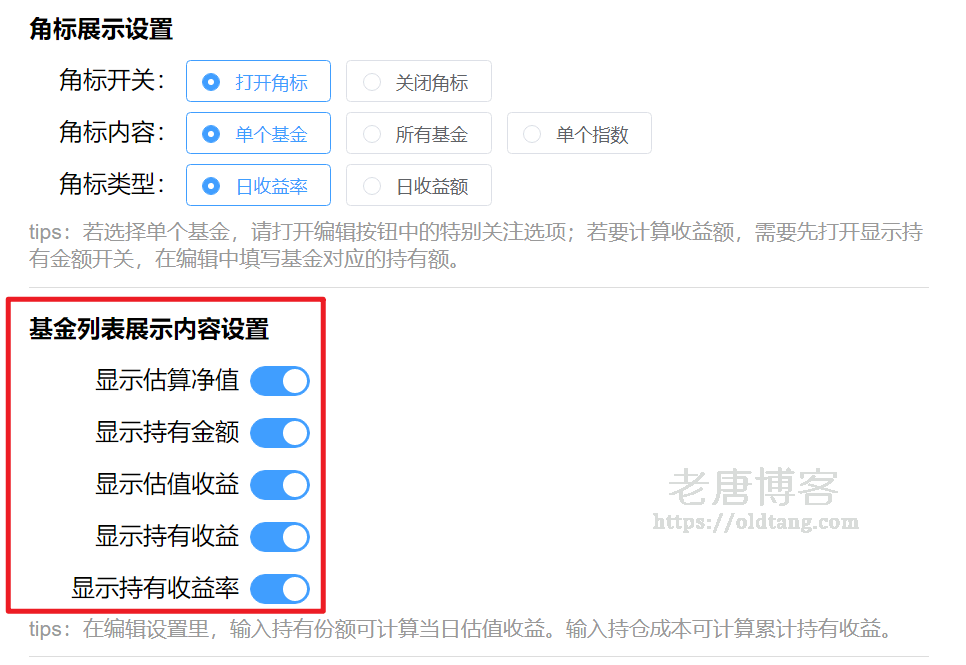 - 角标内容自定义,单个与全部基金,收益额与收益率