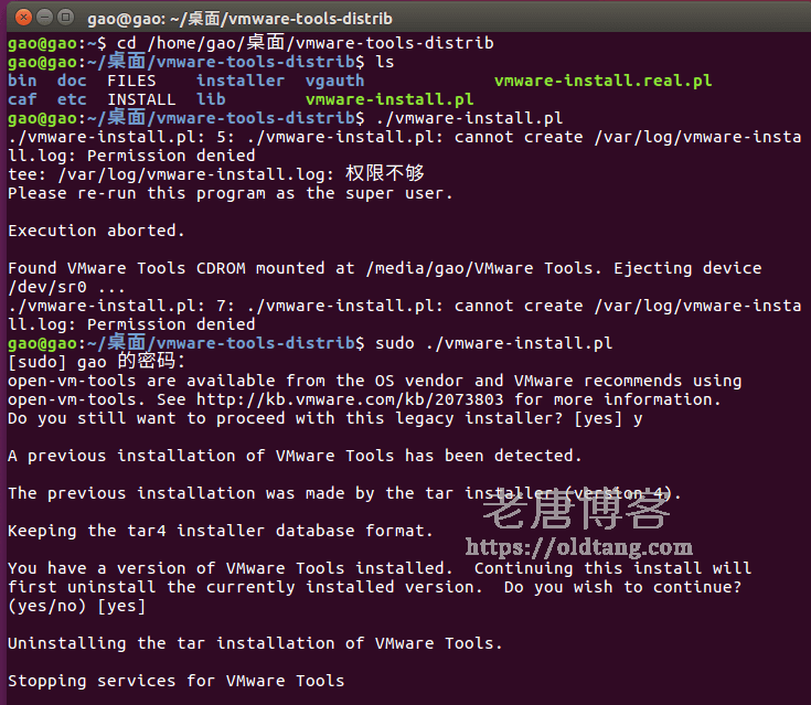 4、打开 shell,通过 cd 打开 vmware-tools-distrib(上一步解压文件名),执行