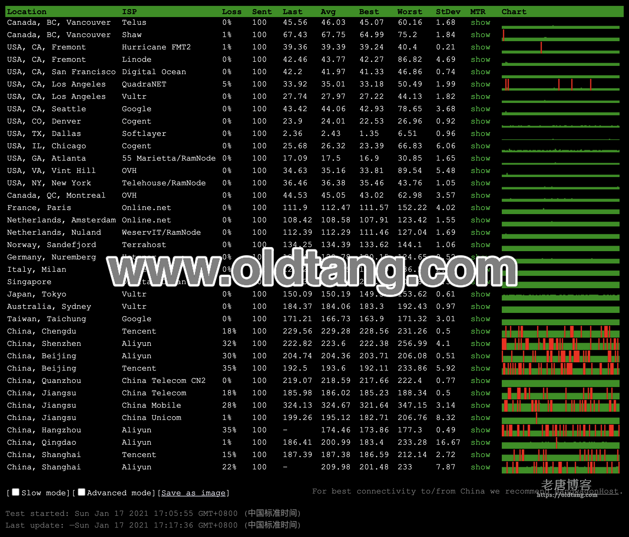 | 全网 | 美国达拉斯(VULTR) 0.3ms/江苏南通(移动) 409.8ms | 163.9ms |