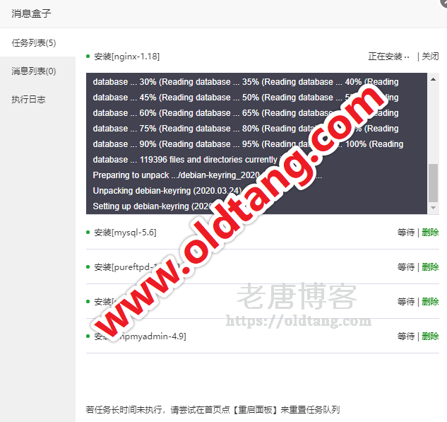 选择之后,就可以看到下面的界面,开始安装建站环境了。