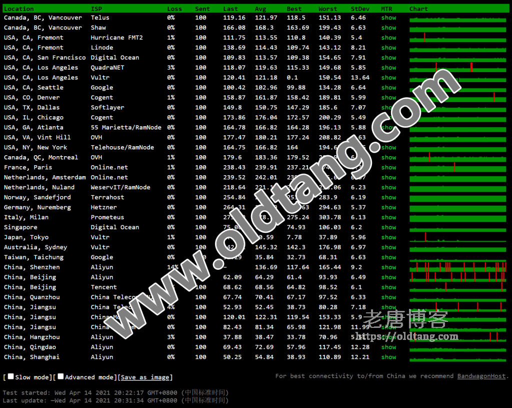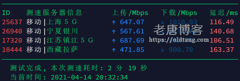 下面测试时间是晚上 8 点到 9 点之间,应该算是一天最高峰的时候了,所以其他时间的结果只可能比下面的结果好,不会再差。