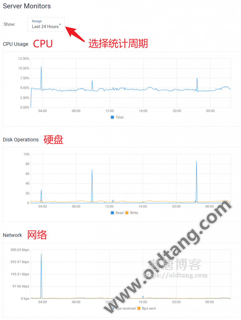 Vultr VPS 有一个 Usage Graphs 功能,可以方便的查看我们用了多少流量,以及最近一段周期内的 CPU、硬盘、网络等使用情况。Vultr 虽然是按小时计费的,不过如果你一定时间内使用流量过多,那么会提前扣完月费,之后再用就不要钱了。所以我们还是可以注意一下 Vultr VPS 的流量等使用情况。