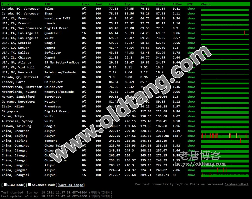 - 《2021 搬瓦工弗里蒙特机房测评 (USCA_FMT) – 速度 延迟 丢包率测试》