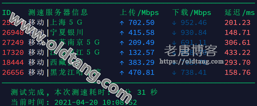 | 上海 | 69.047ms | 湖南 | 85.58ms | 福建 | 103.123ms | 天津 | 131.472ms |