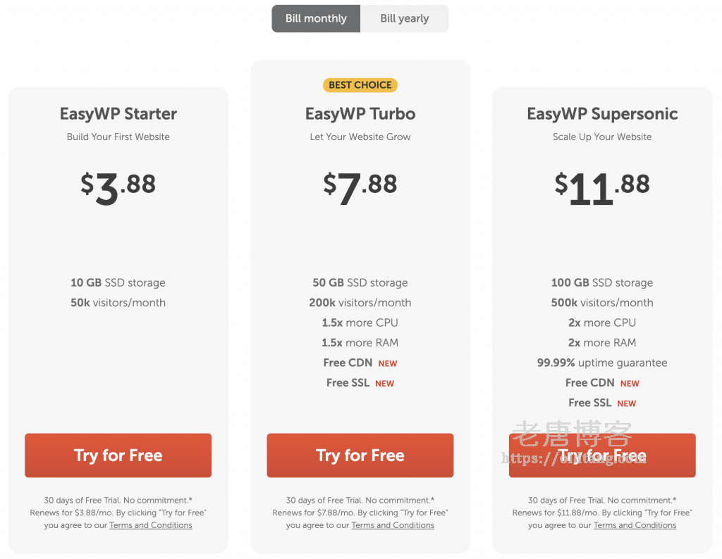 我们可以看到,月付价格还是挺贵的,免费使用一个月其实不错。