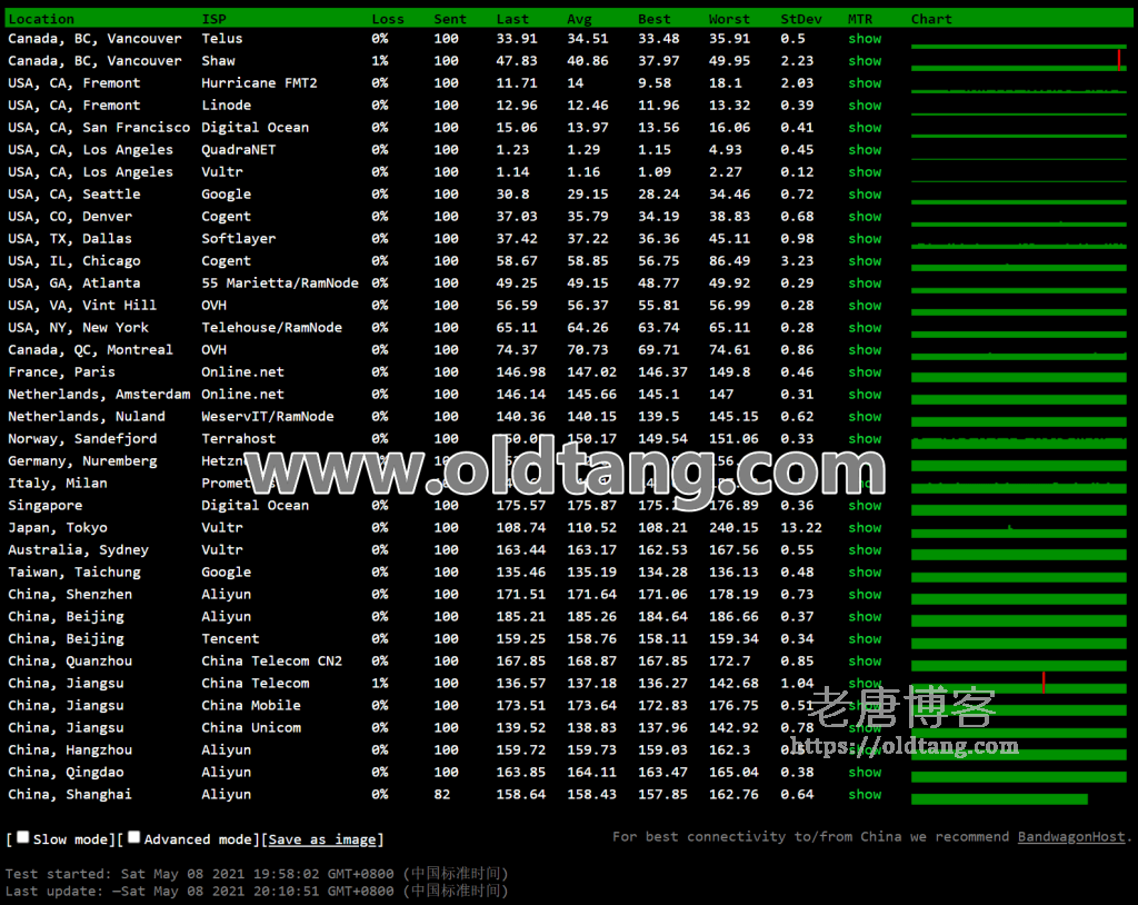 | 线路 | 最快节点 | 最慢节点 | 平均响应 |