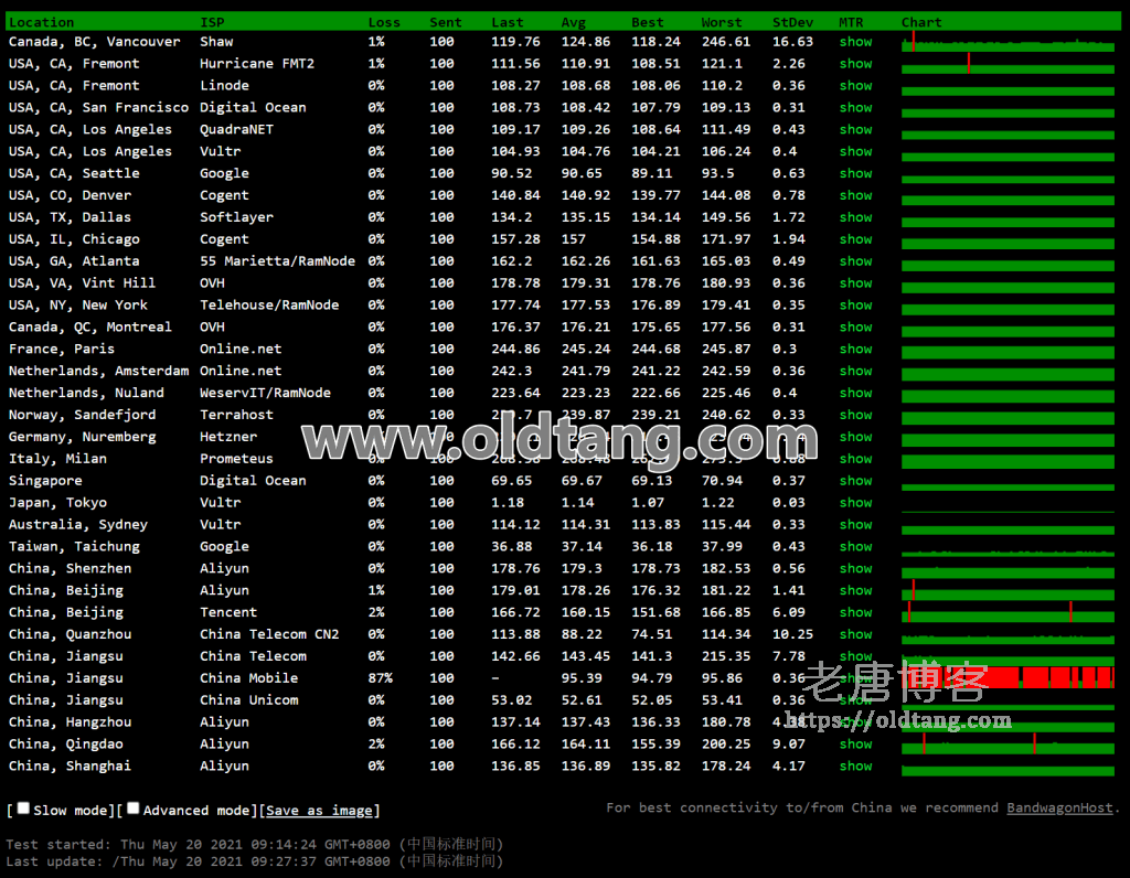 | 线路 | 最快节点 | 最慢节点 | 平均响应 |