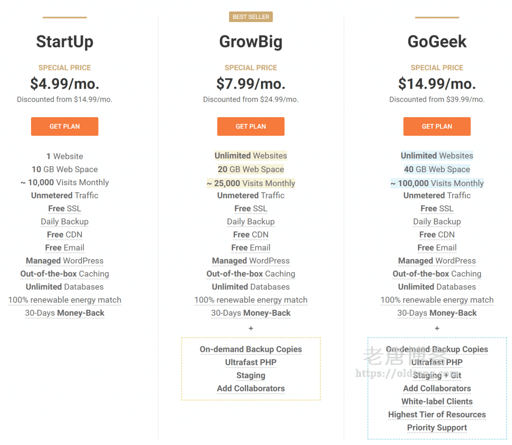 SiteGround 是一家比较知名的美国主机商家,目前来说我们使用虚拟主机的频率也比较低了,好像也不会去购买虚拟主机了。但是如果我们只想管网站内容而又不想负责网站 VPS 或者服务器的维护工作的话,那么虚拟主机其实是个不错的选择。至少使用虚拟主机的话我们就不需要负责运维工作,现在看到 SiteGround 最便宜的虚拟主机是一个月 $4.99,好像也不便宜?最便宜的可以托管无限主机的是 GrowBig 套餐,需要 $7.99 一个月。
