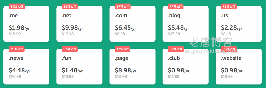 主要包括三个方面的促销,第一是域名优惠,部分域名促销价格如下。