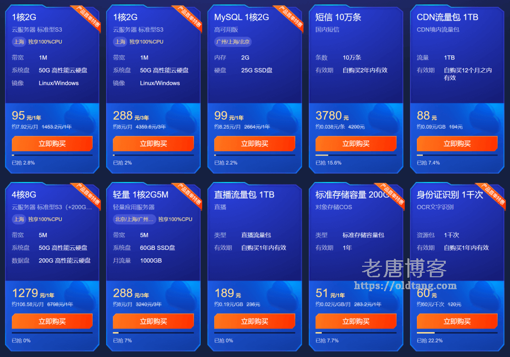 首先是秒杀活动,这个一如既往,算是一个传统活动了,目前最便宜的秒杀价格仅需 95 元/年,3 年的话是 288 元。此外目前其实轻量应用服务器更划算一些,同样是 3 年 288 元,我会选择轻量应用服务器,因为带宽更大一些。