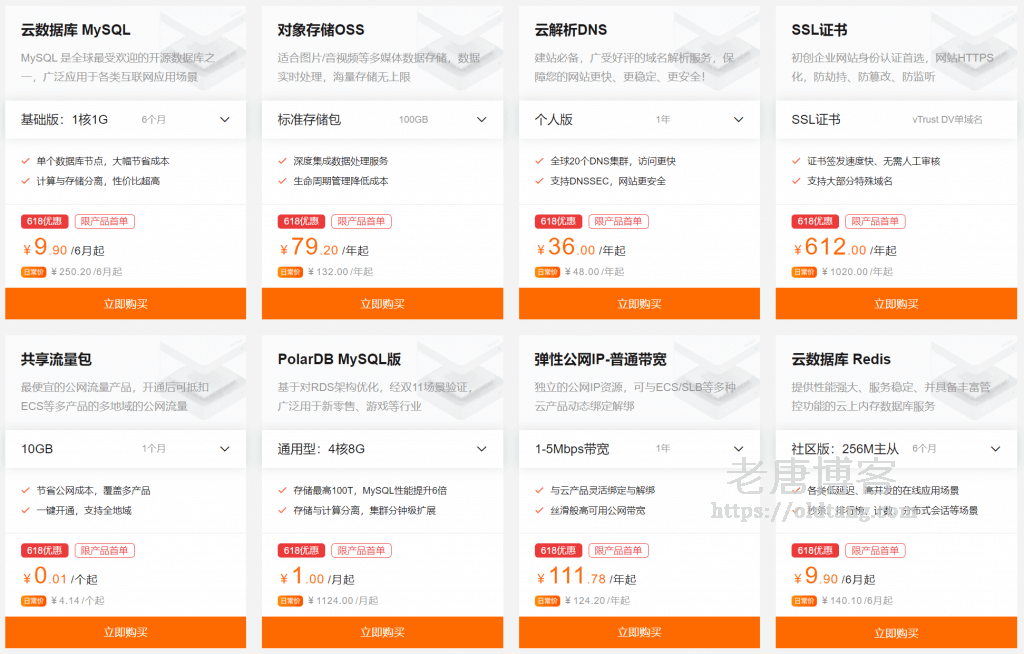 此外,还有云数据库、对象存储、云解析等优惠,这个可以配合云服务器使用,不过一般来说不太用得到。