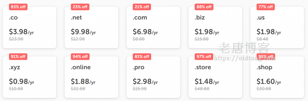 下面是部分域名优惠信息,除了 .CO,.COM 也挺便宜的。