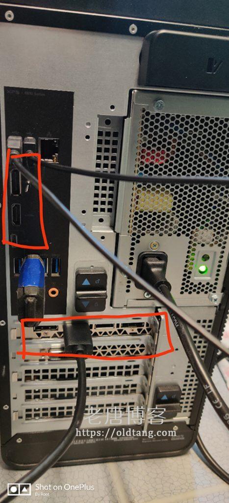这种现象的原因(我猜测)大概是上面一排的显示器接口要等登录 Windows 之后才会被激活,而下面一排是不需要的,所以其实细想一下会发现之前一直插着上面一排接口的时候开机的时候也根本看不到戴尔的 logo,也看不到开机过程,而是等待黑屏一会儿之后突然就出现登录界面。其实是因为下面的是显卡插槽,而这个 CPU 没有核显。所以只能直接插在显卡上面,才能看到开机界面。