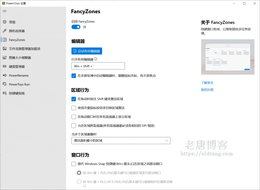 各种实用的小功能,感觉不需要多介绍,有需要的自然会用到,我用的比较多的是 FancyZones,可以自定义分割屏幕,感觉非常实用。