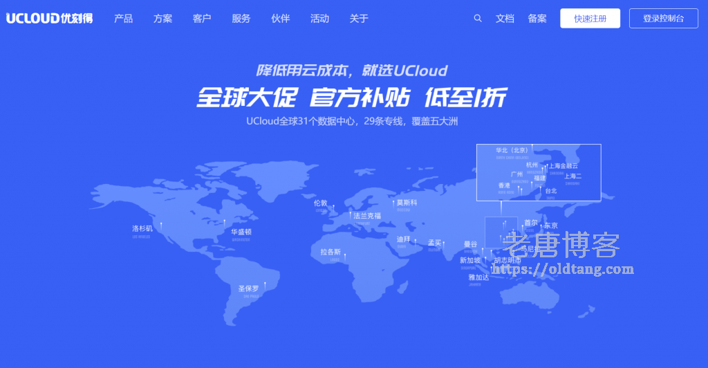 UCloud 中文名为优刻得,是一家科创板上市公司,主要销售 VPS、主机、域名等产品。UCloud 目前全球拥有 31 个机房,29 条专线,覆盖五大洲,机房数量是真的多。不过 UCloud 购买之后是不能迁移机房的,买的时候是什么,就一直是什么机房。所以购买之前我们可以测试好 UCloud 哪个机房好些。一般来说建议购买 UCloud 香港机房、台湾机房、或者是内地机房。
