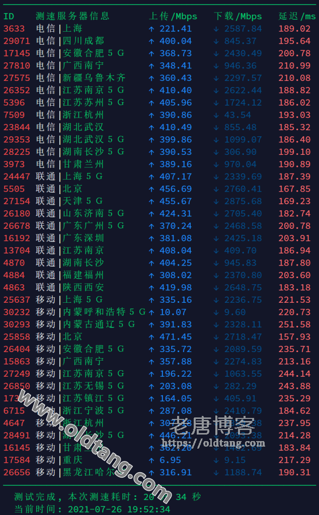| 吉林 | 189.472ms | 宁夏 | 190.112ms | 湖北 | 191.096ms | 上海 | 191.328ms |