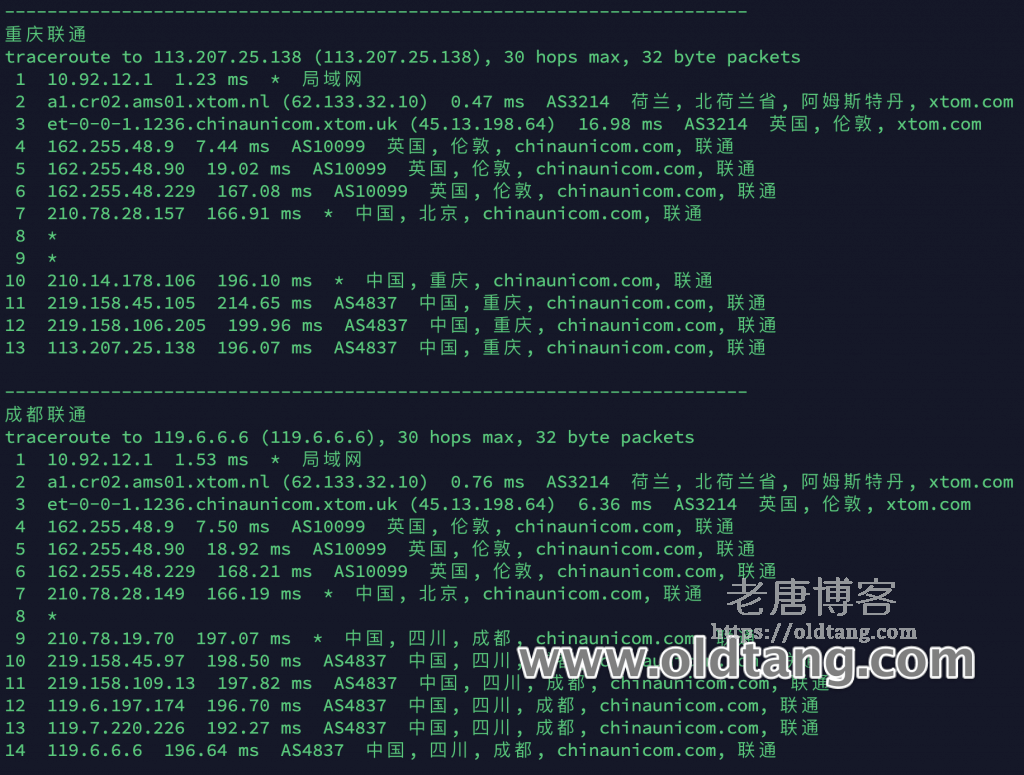 路由基本上都是 AS10099 -> AS9929 -> AS4837,根据不同地区可能会有所不同。