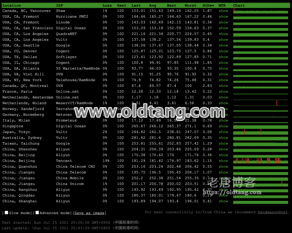 | 线路 | 最快节点 | 最慢节点 | 平均响应 |