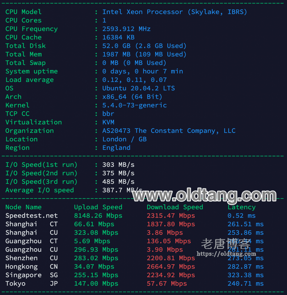 一、Vultr 英国机房总体/速度测试