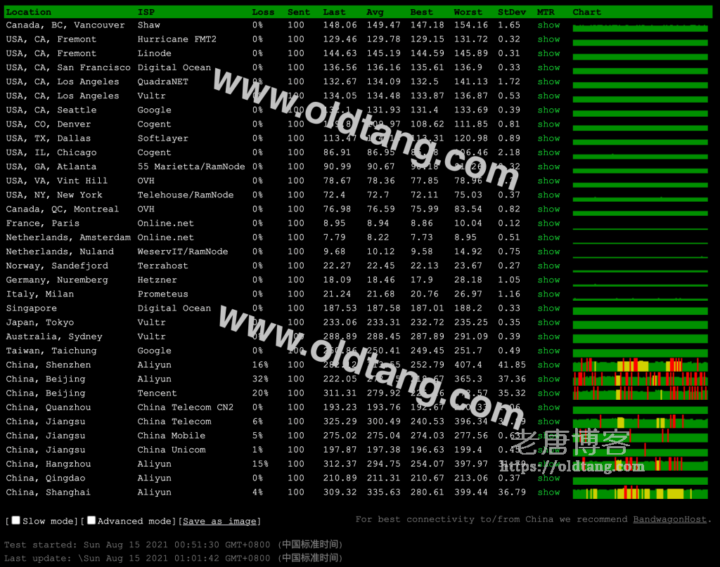 | 线路 | 最快节点 | 最慢节点 | 平均响应 |