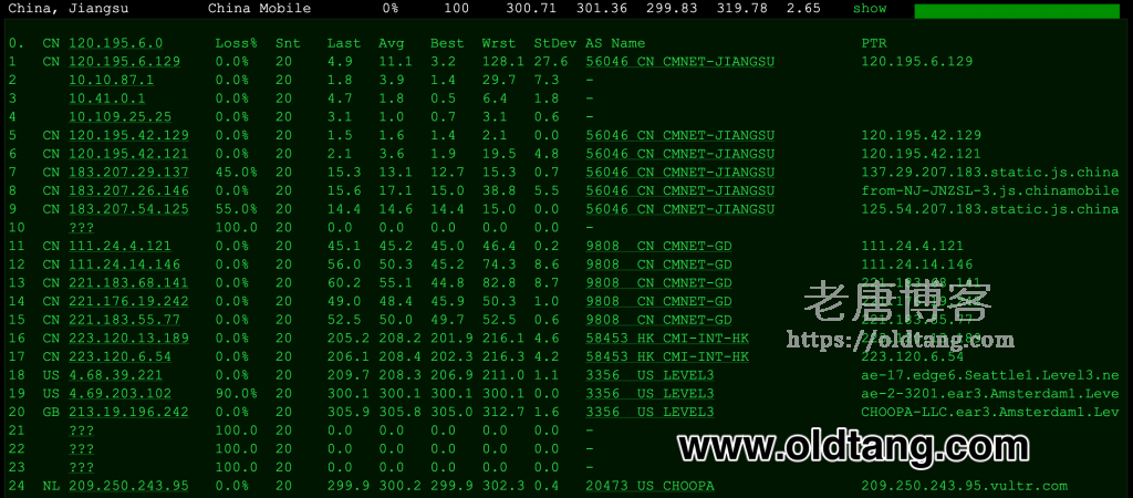 最近搬瓦工荷兰机房很火,因为接入了联通 AS10099/AS9929 高端线路。其实 Vultr 也有一个荷兰机房,不过线路就没有那么好了。但是看了看 Vultr 荷兰机房测速结果,除了电信线路速度差点,联通和移动线路速度还是不错的。不过电信看了看居然是接入了直连,只不过是 163 骨干网直连,可能晚上速度就慢点吧。本文分享一下 Vultr 荷兰阿姆斯特丹机房的测评结果,包括下载速度测试、延迟测试、丢包率测试,以及路由跟踪结果。这次测试加了一个去程路由,大家可以和回程路由对比着看看。