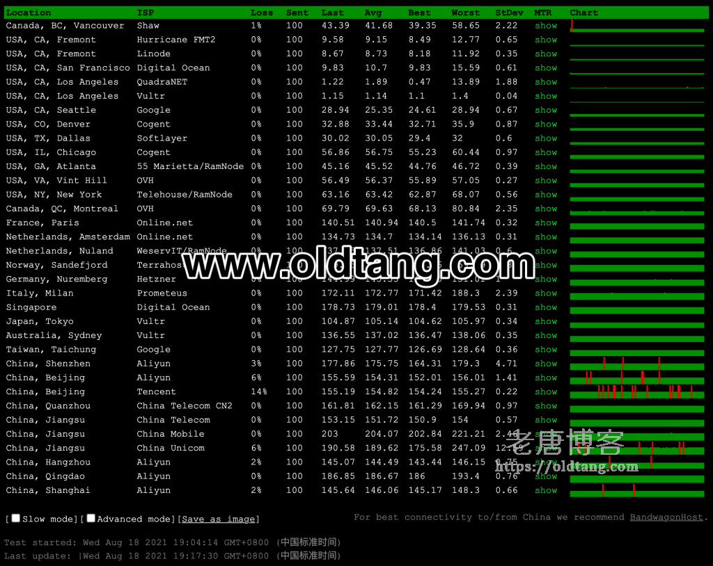 | 线路 | 最快节点 | 最慢节点 | 平均响应 |