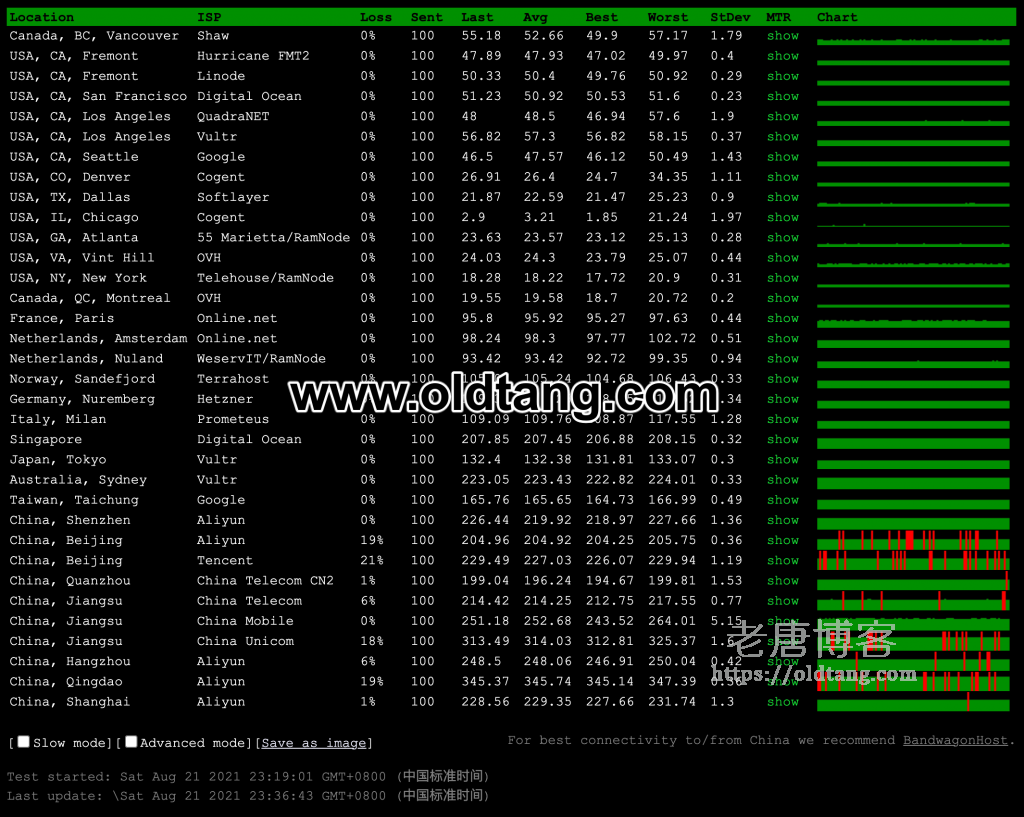 | 线路 | 最快节点 | 最慢节点 | 平均响应 |