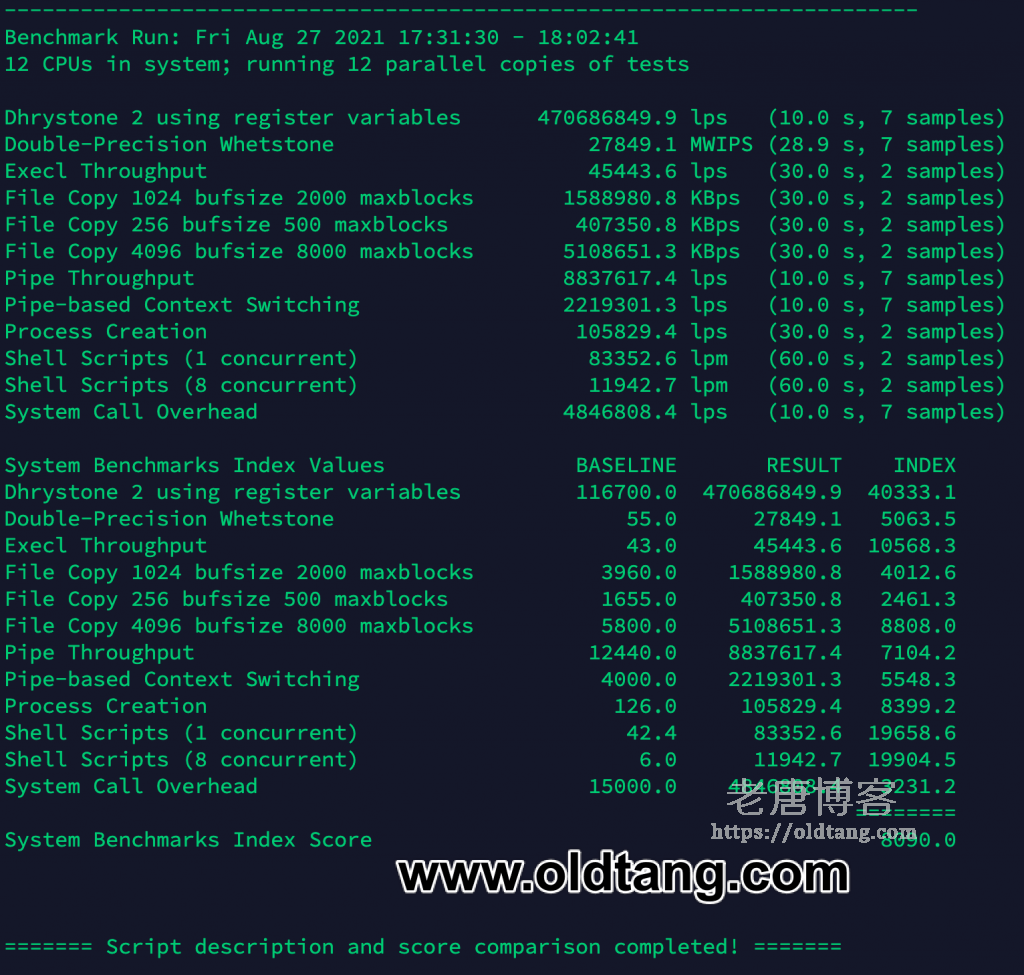 昨天给 Vultr 独立服务器测评的时候,跑了个分。本文记录一下 Linux VPS/服务器上面使用 UnixBench 脚本进行跑分的方法。UnixBench 是一个类 Unix 系统(Unix,BSD,Linux)下的开源性能测试工具,被广泛用与测试 Linux 系统主机的性能。Unixbench 的主要测试项目有:系统调用、读写、进程、图形化测试、2D、3D、管道、运算、C 库等系统基准性能提供测试数据。