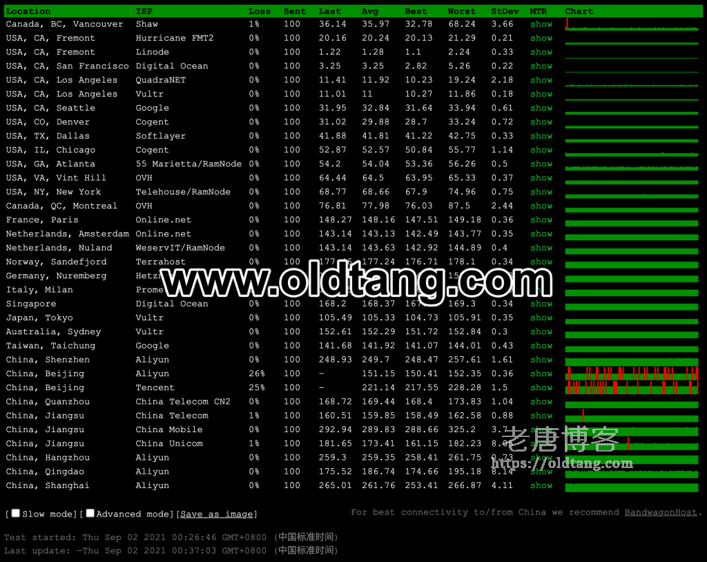| 线路 | 最快节点 | 最慢节点 | 平均响应 |
