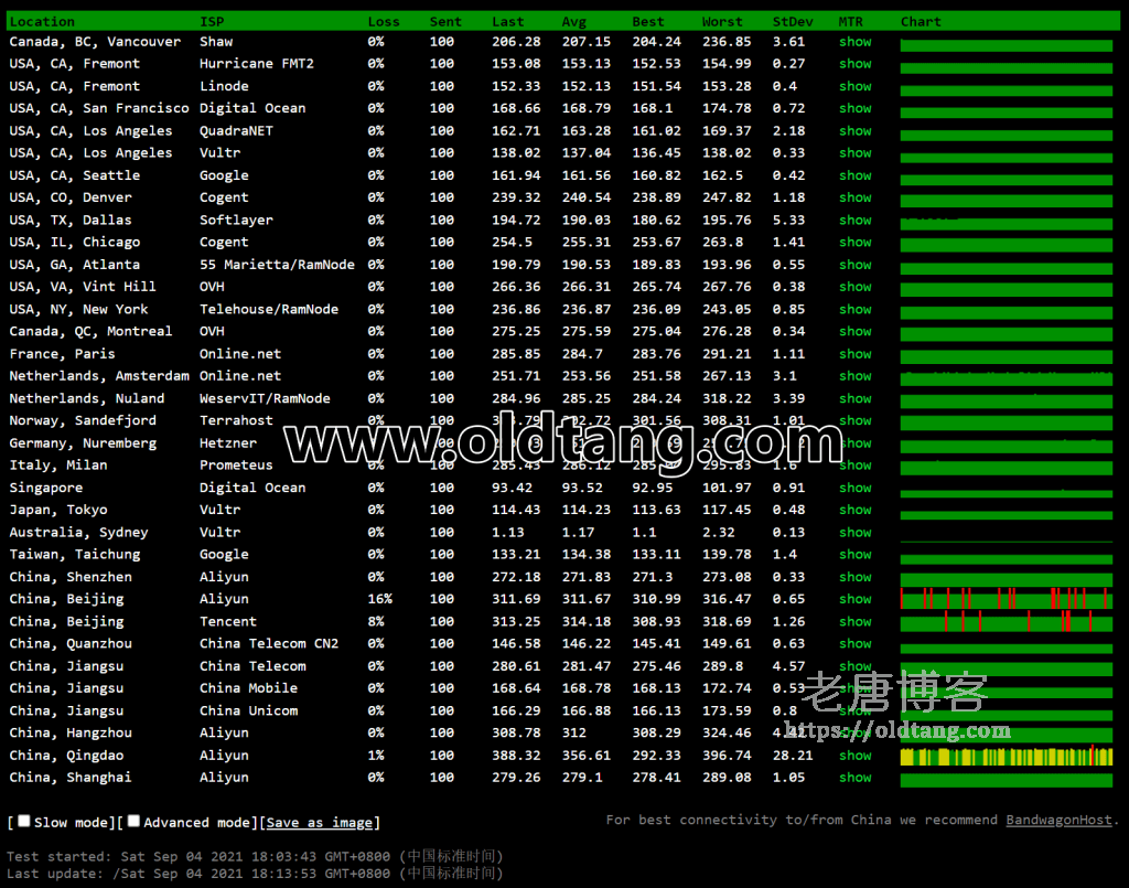 | 线路 | 最快节点 | 最慢节点 | 平均响应 |