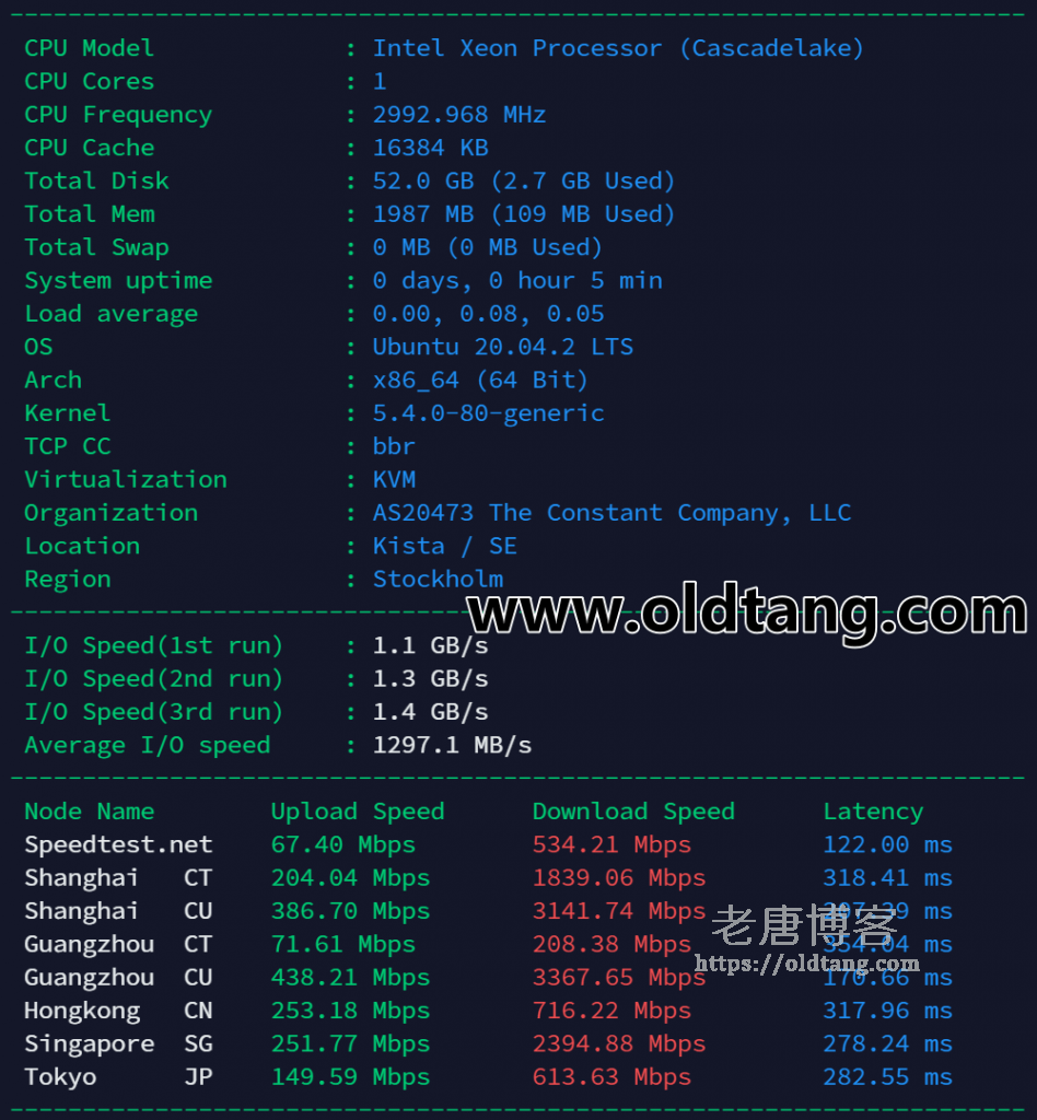 下面是 Vultr 瑞典机房总体测评,毕竟是新机房,IO 速度非常快。