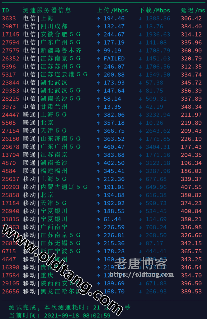 | 移动 | 上海移动292.023ms | 西藏拉萨移动446.103ms | 374.923ms |