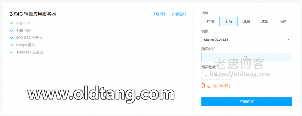 腾讯云不愧是良心云,这次的活动让人目瞪口呆,直接给老用户赠送 1 年免费轻量应用服务器,而且配置还不低,是 2核 4G 60G 硬盘 6M 带宽的高配套餐。地区可以选择广州、上海、北京、成都、南京,免费一年,一年后自然是要自己续费,但是免费的怎么都是香的,而且不是一个月,而是一年。