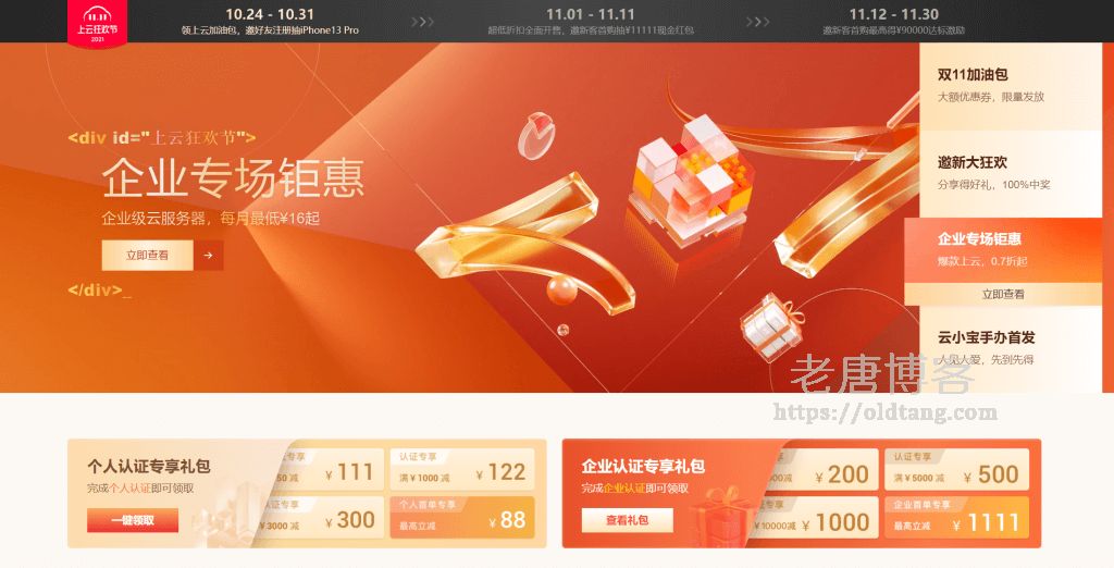 以上就是阿里云双十一的活动内容,因为目前活动还没有正式开始,等到正式开始了老唐再来分享详细优惠,看看有什么值得买的。
