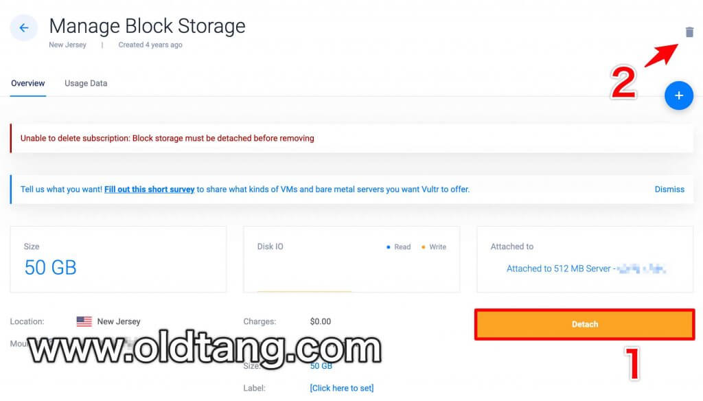 二、删除 Vultr 块存储方法