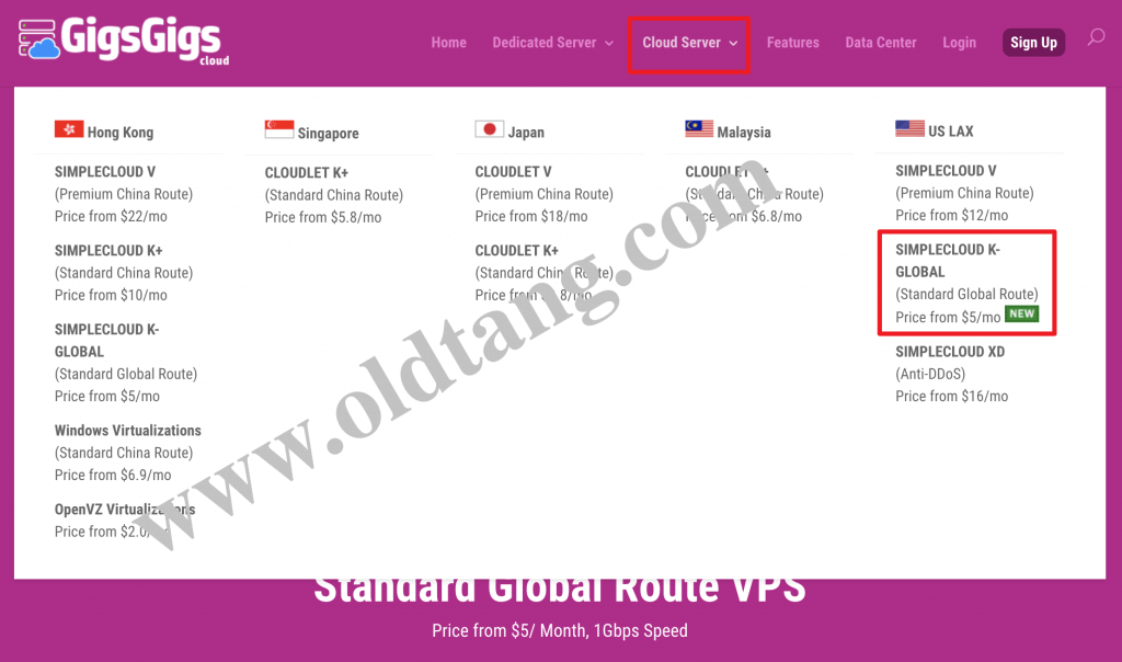 进入官网之后,依次点击 Cloud Server -> SIMPLECLOUD K-GLOBAL,就可以看到这次新上线的系列,如图所示。
