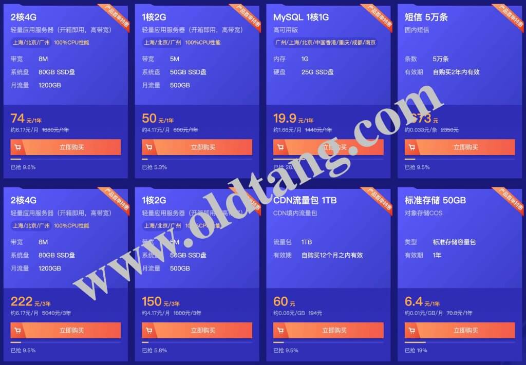 下图中第一个就是性价比最高的 2核4G 轻量应用服务器,然后第二个就是 1核2G 最便宜的云服务器只要 50 元一年。