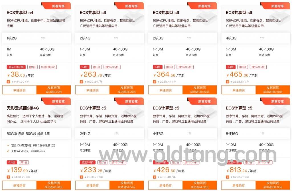 下面是部分优惠套餐,最便宜的 1核 2G 仅需 35 元/年,然后其他的几个套餐也是拼团之后会再返现,所以如果我们有朋友还是阿里云新用户,可以邀请他们买一买,享受一下优惠。(点击前往拼团)
