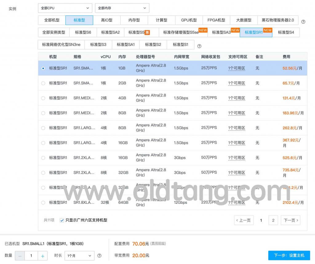 腾讯云 ARM 架构云服务器火热公测中,全新架构的算力体验,仅需 52 元/月。说是全新 ARM 架构,暂时没有看到有什么特别的,好像基本都是性能过剩,不如加点带宽加点内存来得实在。腾讯云毕竟良心云,公测价格应该不会很贵,看了看最便宜的是 52 块钱一个月,目前好像只有广州机房有这个机型,全新机型叫做标准型 SR1,买的时候注意区分。