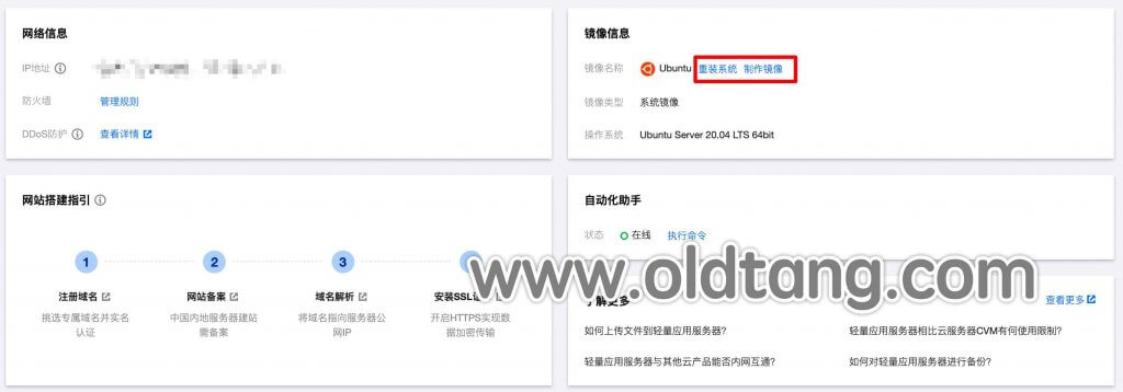腾讯云轻量应用服务器有一个非常非常非常好用的功能,就是可以制作系统镜像,我们可以把当前的系统状态直接做成一个镜像文件,然后如果再买新的轻量应用服务器,可以重装系统的时候直接选择这个制作的自定义镜像,从而实现快速的迁移数据,或者也可以作为备份来用。如果有需要迁移轻量应用服务器,比如到期了想换一台轻量应用服务器,或者是怎么样的,就可以通过这个功能。但是有一个限制,制作的自定义镜像只能在当前地区使用,无法跨地区使用。比如香港的轻量应用服务器的镜像无法用在上海的。