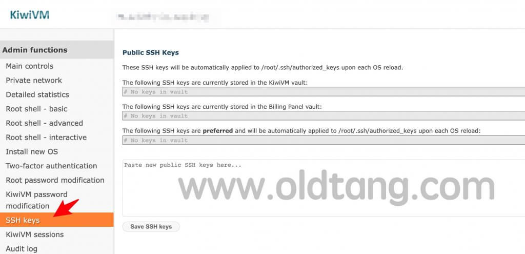 一、搬瓦工 KiwiVM 控制面板 SSH Keys 功能