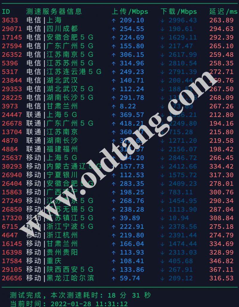 最后再看一下更多的速度测试结果,如下图所示,大部分地区速度还是可以的。延迟虽高,速度不差。